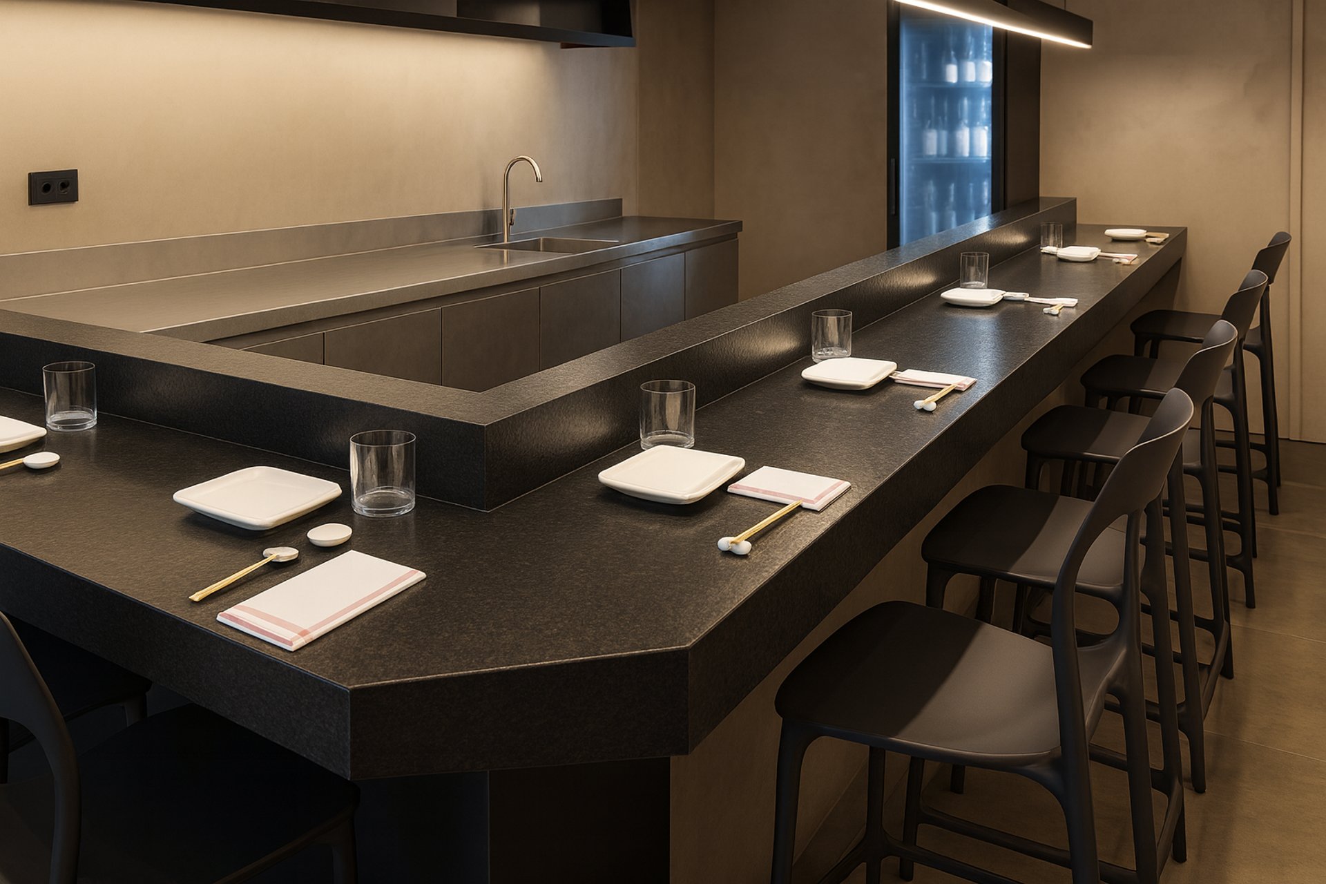 En una calle tranquila de Gràcia, tras una discreta fachada negra, Merikenko eleva la cocina japonesa a través de la sencillez, la técnica y el respeto absoluto por el producto. Con solo diez asientos frente a la barra, cada cena se convierte en una experiencia íntima, cuidada al detalle.