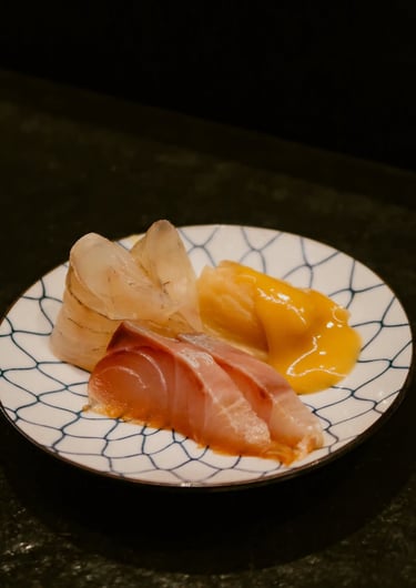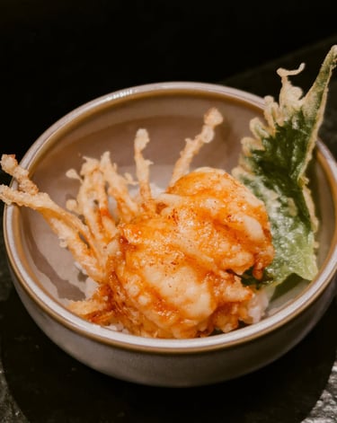 Kenji Ueno —referente de la gastronomía nipona en Barcelona— dirige personalmente cada pase de este menú omakase, donde la tempura estilo Kanto convive con delicados sashimis, nigiris y entrantes que revelan una sensibilidad excepcional.